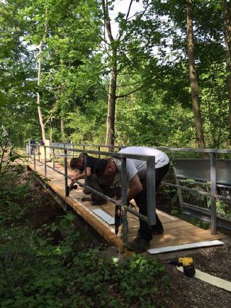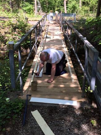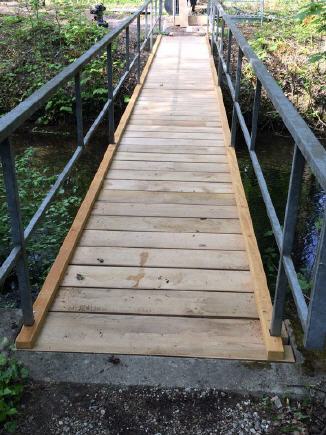 Nach mehrwöchiger Sperrung der maroden städtischen Brücke beim Altrhein (Kecke Scherschel), sind die Sanierungsmaßnahmen zeitgerecht mit der Eröffnung des Naturlehrpfades abgeschlossen. Die Brücke wurde von mehreren Mitgliedern der Fischerzunft Auenheim in mühevoller Kleinarbeit instandgesetzt. Sie kann seit Samstag , den 26.4. wieder gefahrlos überquert werden. Die Kosten für Holz, Farbe, Schrauben und sonstiges Kleinmaterial wurden von der Gemeinde Auenheim übernommen.