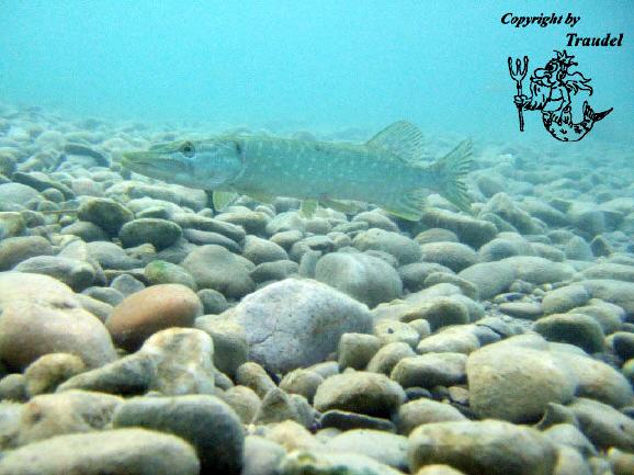 Hecht schuppen, ausnehmen, unter kaltem Wasser innen und außen abspülen und trocken tupfen. Innen salzen. Hecht mit 100 g in dünnen Scheiben geschnittenem Speck belegen. Den übrigen Speck würfeln. In einer Pfanne glasig werden lassen. Den Fisch dreingeben, mit zerlassener Butter übergießen. Fettpfanne in den vorgeheizten Ofen bei 220 Grad schieben. Garzeit: 30 Minuten.