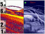 Hier sehen Sie einige Echolotbilder , aufgenommen mit der neuesten Sidescan - Technik.Side- Imaging, Down- Imaging und 2 - D Ansicht.