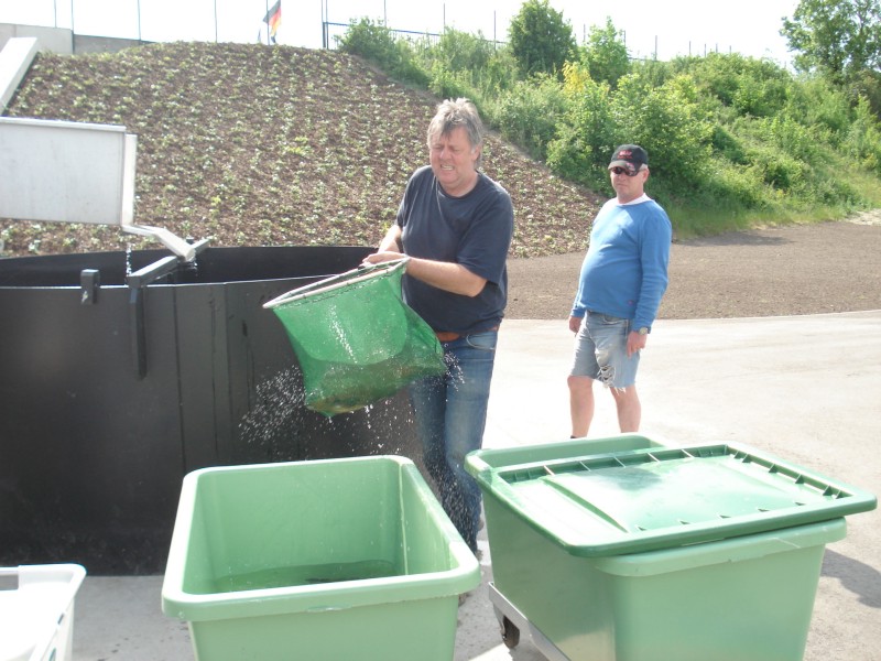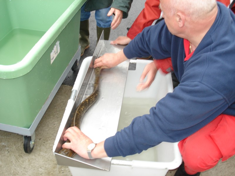 Im wöchentlichen Wechsel mit unseren französischen Kollegen kümmert sich Ralf Baumert mit einigen unserer Zunftmitglieder um die Reusenziehung, die Dokumentation und Vermessung der gefangenen Fische.